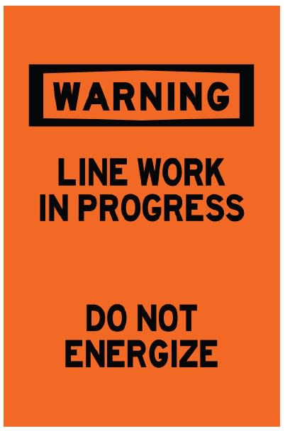 Warning Line Work in Progress. Do Not Energize Vinyl Sign.